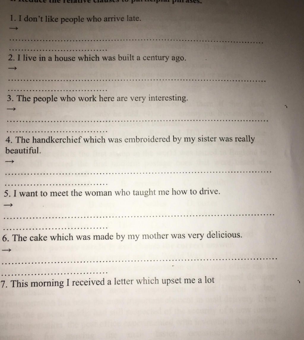 Giải thích:✓ trong câu là dạng past participle (quá khứ phân từ dạng bị động) cụ thể ở câu:( 2,4,6) ta cần bỏ đại từ quan hệ bỏ động từ to be rồi đưa động từ về dạng V3/ed.