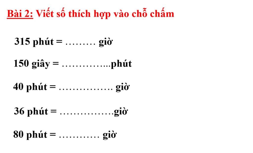 $\text{150 giây = 2 phút 30 giây = 2,5 phút}$