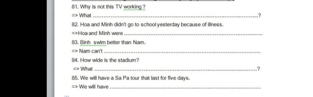 82. Hoa and Minh were absent from school yesterday due to illness.