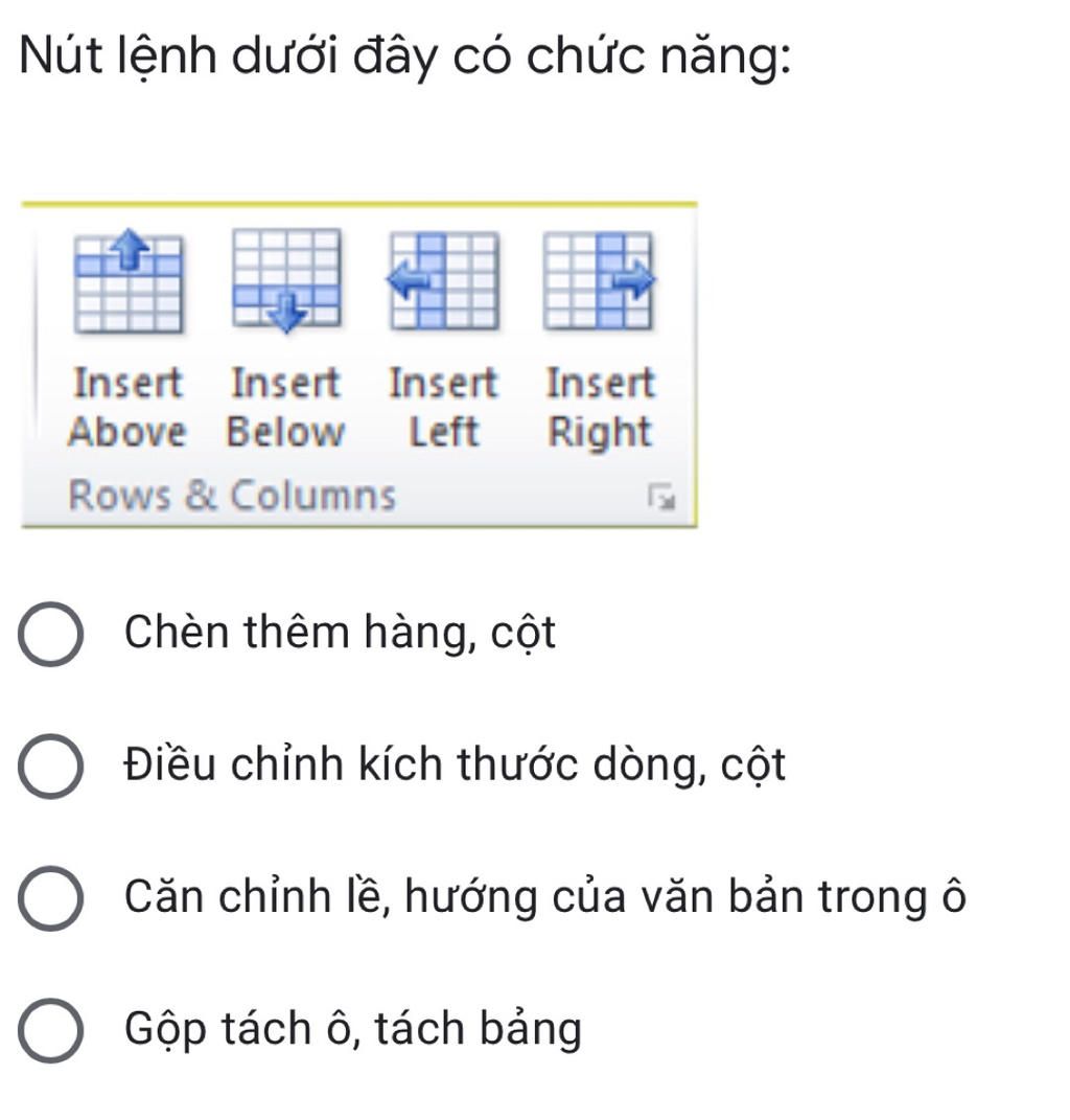Nút lệnh dưới có chức năng: Chèn thêm hàng, cột