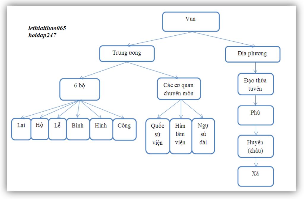 `-` Tổ chức bộ máy nhà nước thời Lê Thánh Tông hoàn chỉnh và chặt chẽ nhất so với trước .Triều đình có đầy đủ các bộ ,tự ,các khoa và các cơ quan chuyên môn. Hệ thống thanh tra giám sát giám sát được tăg cường từ triểu đình đến địa phương