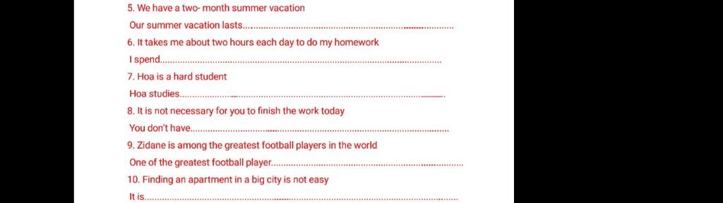 `->` Our summer vacation : danh từ số ít `=>` last `->` lasts