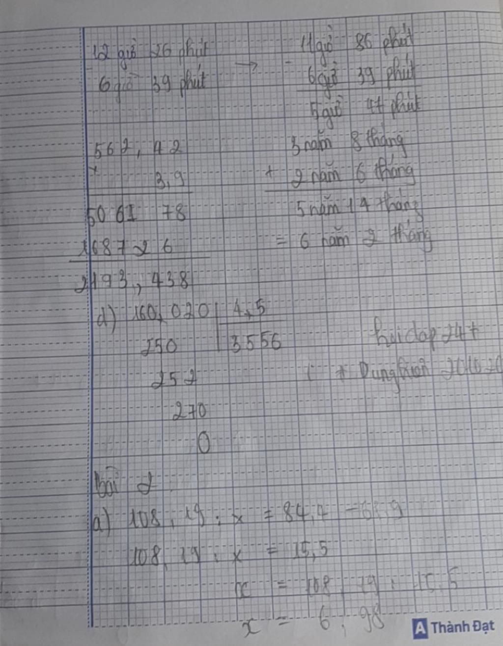 c. 3 năm 8 tháng + 2 năm 6 tháng d. 160,02 : 4,5
