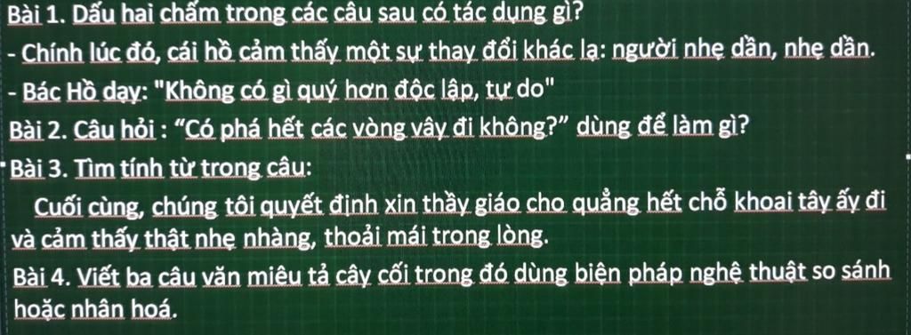 $\text{Dấu hai chấm trong các câu sau có tác dụng:}$