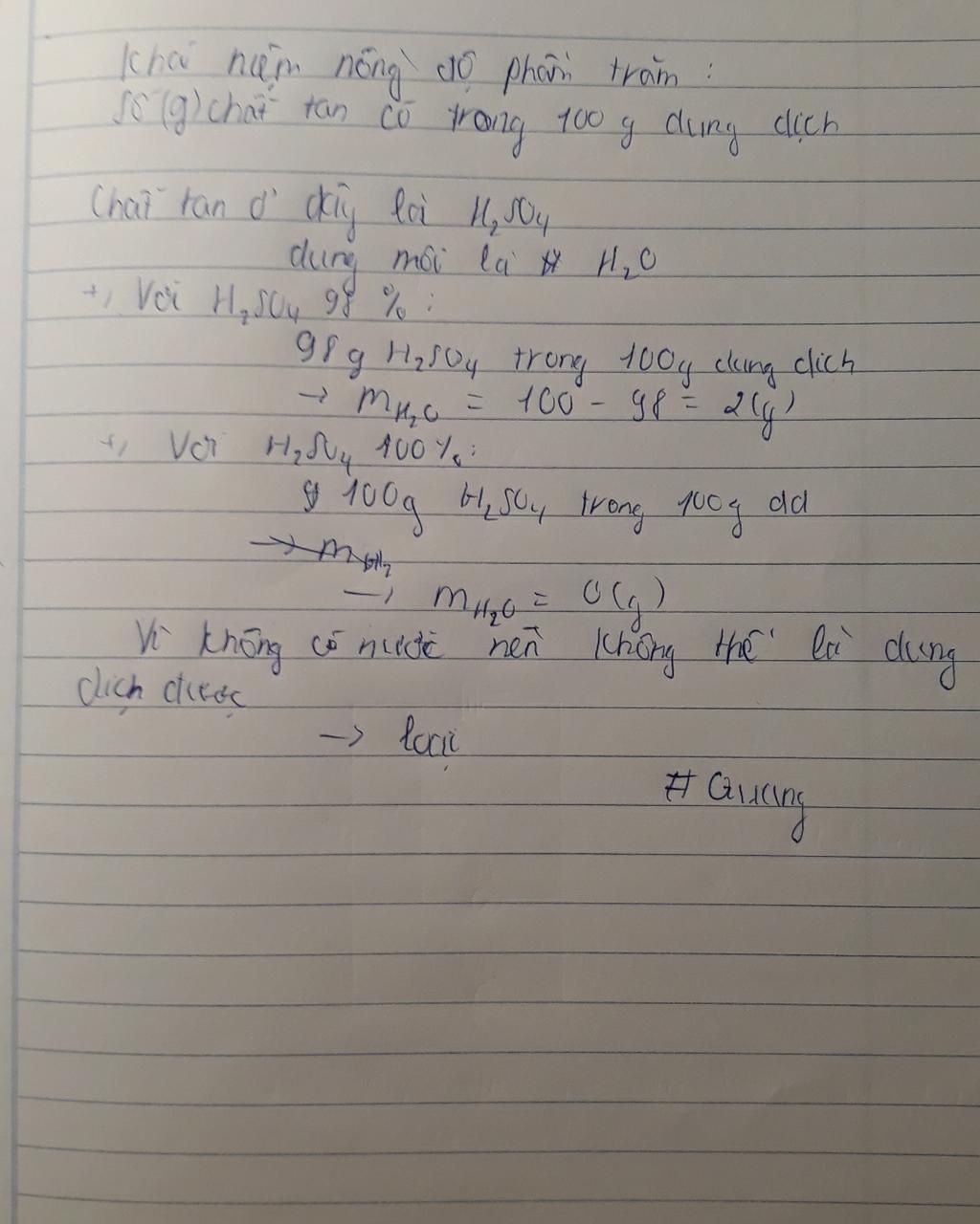 Vì sao h2so4 chỉ có nồng độ 98% mà ko cs nồng độ 100%