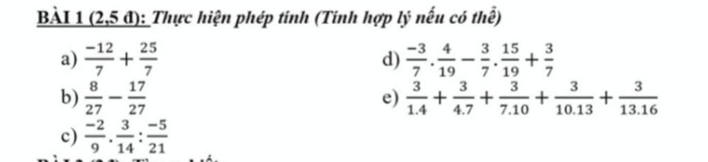 a) `-12/7 + 25/7 = (-12 + 25)/7 = 13/7`