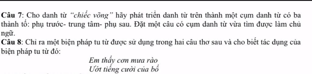 Cụm danh từ là : Một / chiếc võng / Trường Sơn.