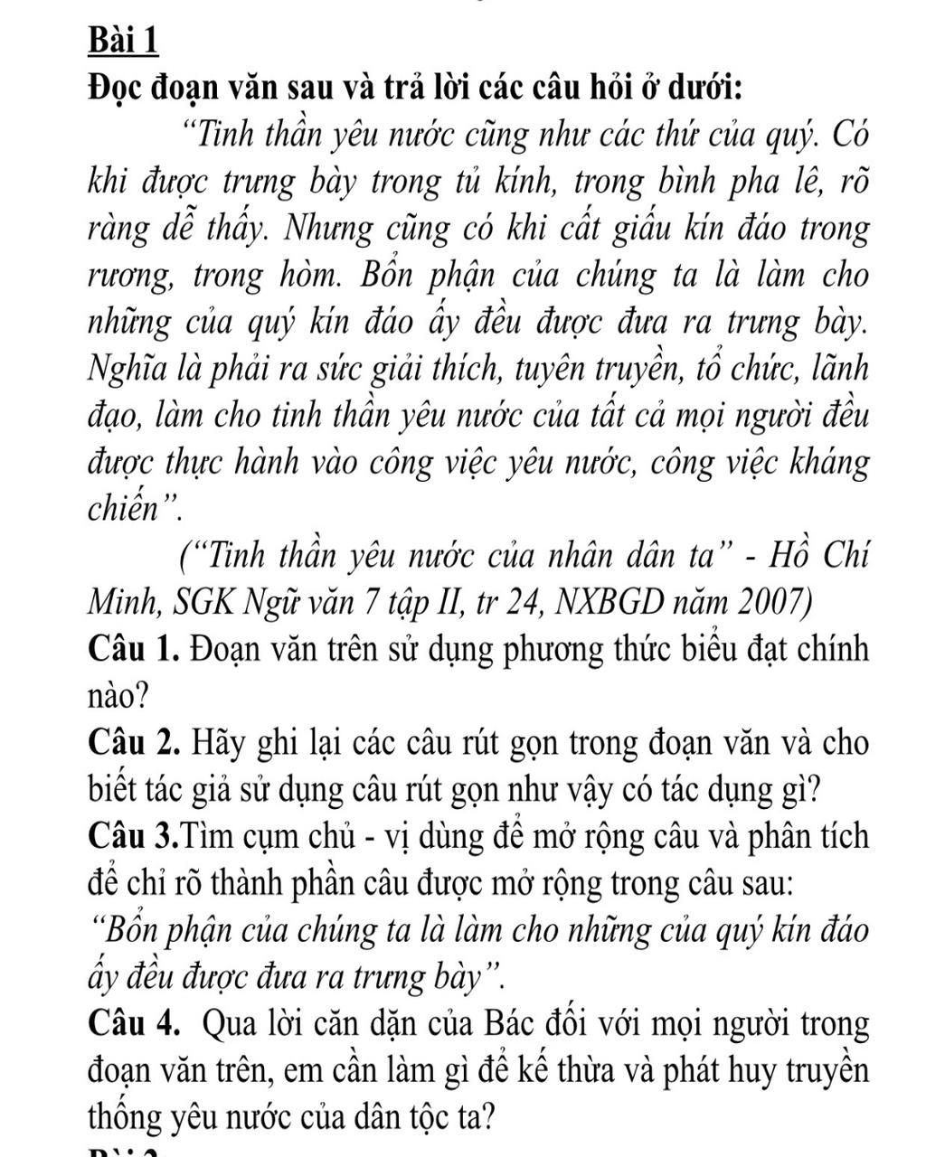 Phương thức biểu đạt chính của đoạn văn là : Nghị luận