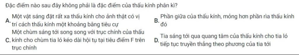 Đặc điểm nào sau đây không phải là đặc điểm của thấu kính hội tụ?