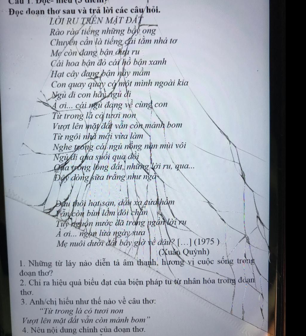 Đọc doan thơ sau và trả lời các câu hỏi.