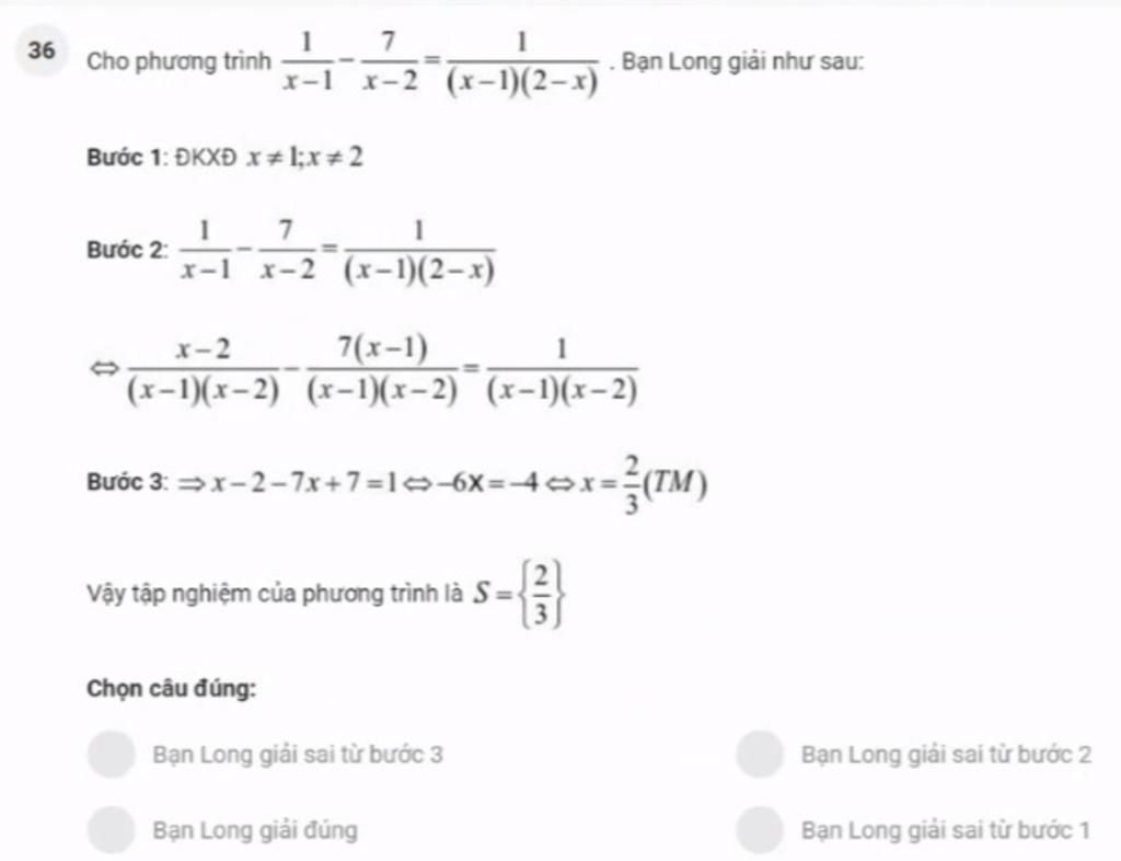 Bạn Long giải sai từ bước 2 từ dấu $\Leftrightarrow $