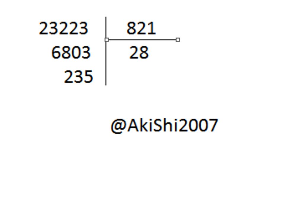 ` text{23223 : 821 = 28 ( Dư 235 ) - Trình bày trong hình. } `