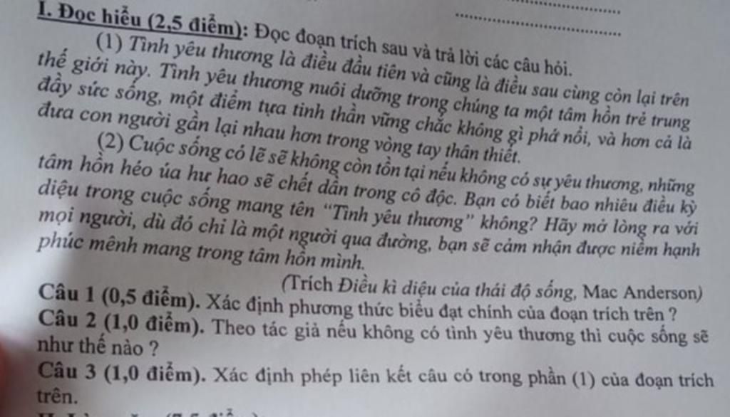 I. Đọc hiểu (2,5 điểm): Đọc đoạn trích sau và trả lời các câu hỏi.