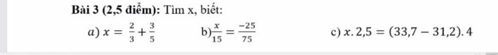 b) $\frac{x}{15}$ = $\frac{-25}{75}$