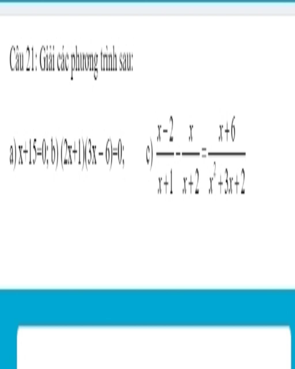 `c) ( x - 2 )/( x + 1 ) - x/( x + 2 ) = ( x + 6 )/( x^2 + 3x + 2 ) `