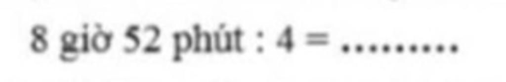 Vậy 8 giờ 52 phút : 4 = 2 giờ 13 phút