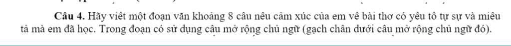Câu 4. Hãy viết một đoạn văn khoảng 8 câu nêu cảm xúc của em về bài thơ có yêu tô tự sự và miêu