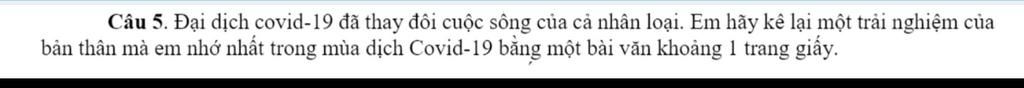 Câu 5. Đại dịch covid-19 đã thay đổi cuộc sông của cả nhân loại. Em hãy kê lại một trải nghiệm của