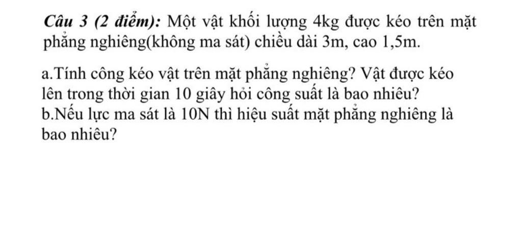`a.`Công kéo vật trên mặt phẳng nghiêng ko ma sát là: