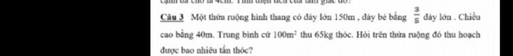 Trên thửa ruộng đó người ta thu hoạch được số tấn thóc là