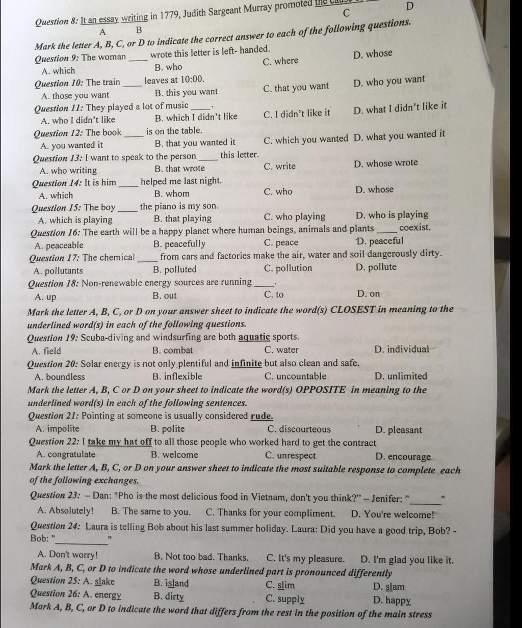 Mark the letter A, B, C, or D to indicate the correct answer to each of the following questions.