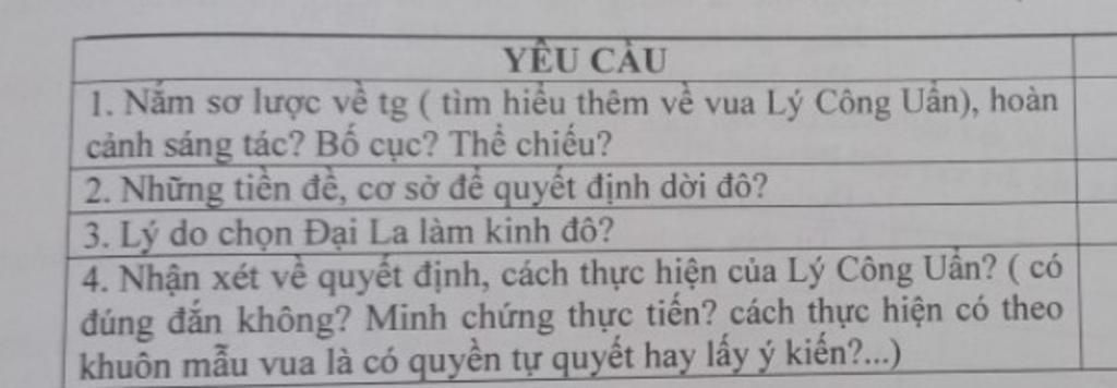 4. Nhận xét về quyết định, cách thực hiện của Lý Công Uẩn? ( có