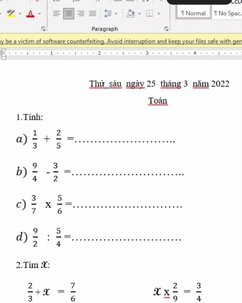 2/3 + x = 7/6 X x 2/9 = 3/4