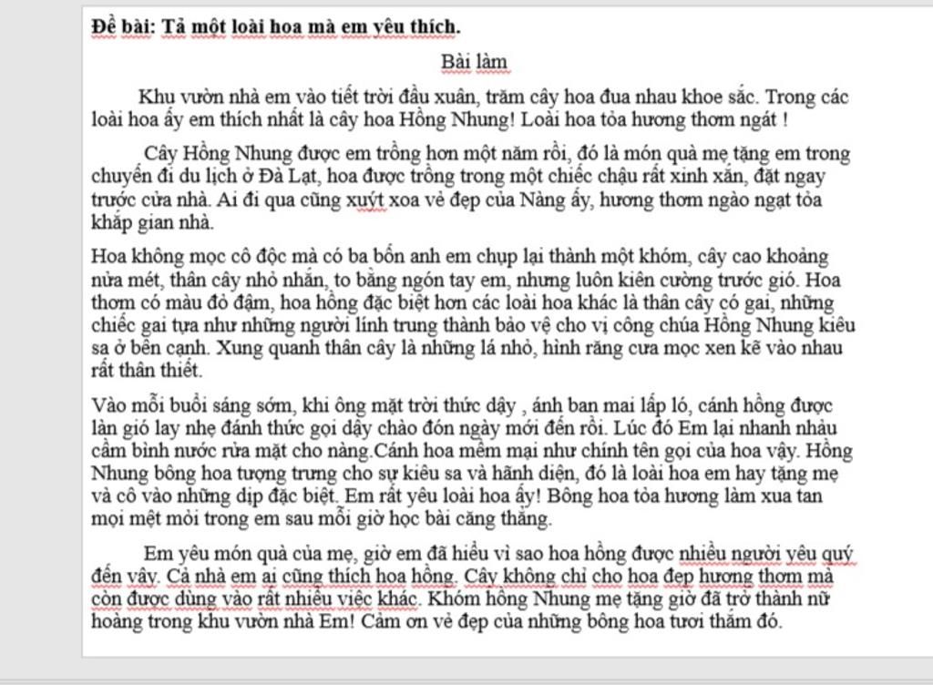 Đề bài: Tả một loài hoa mà em yêu thích.