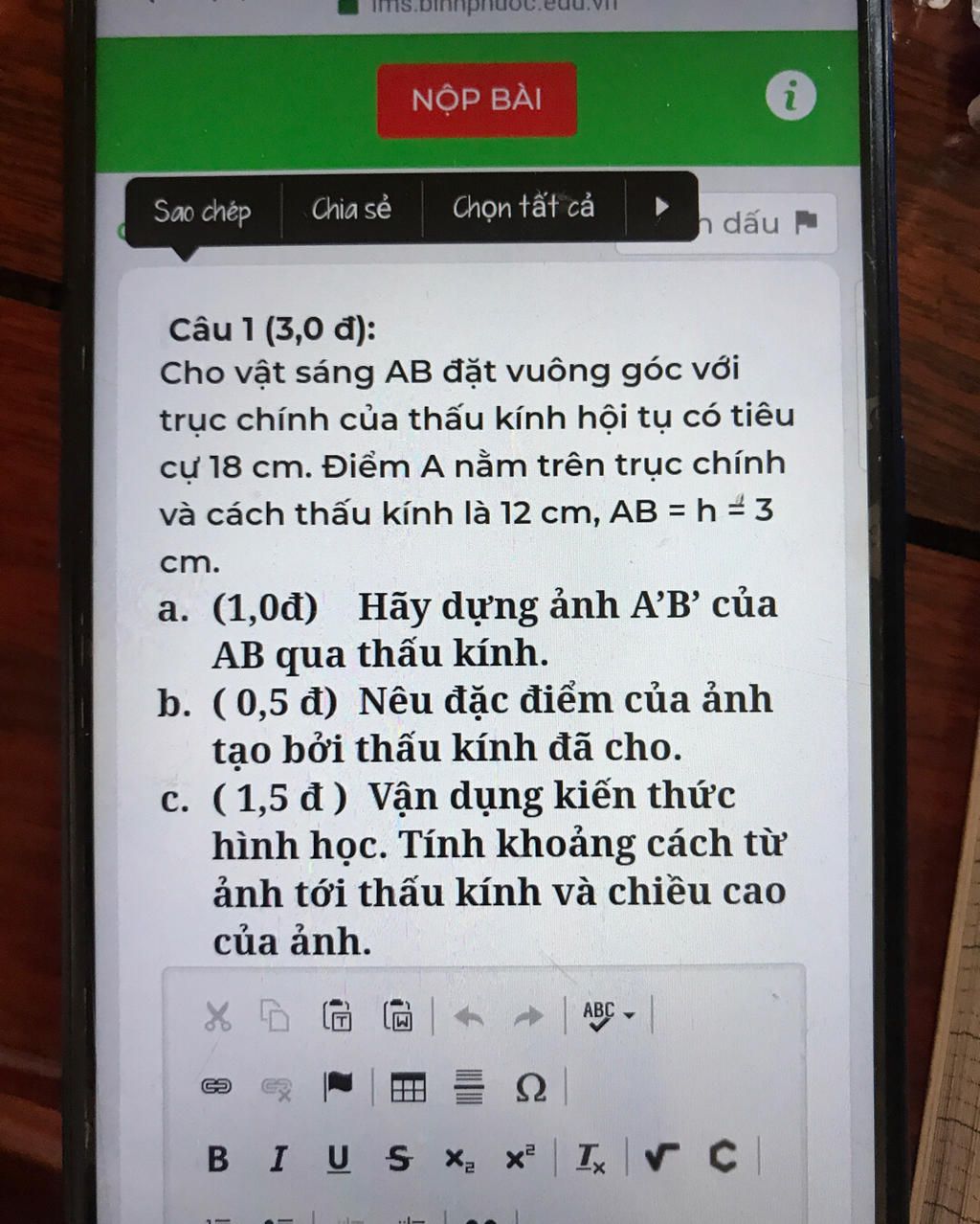 a. (1,0đ) Hãy dựng ảnh A’B' của