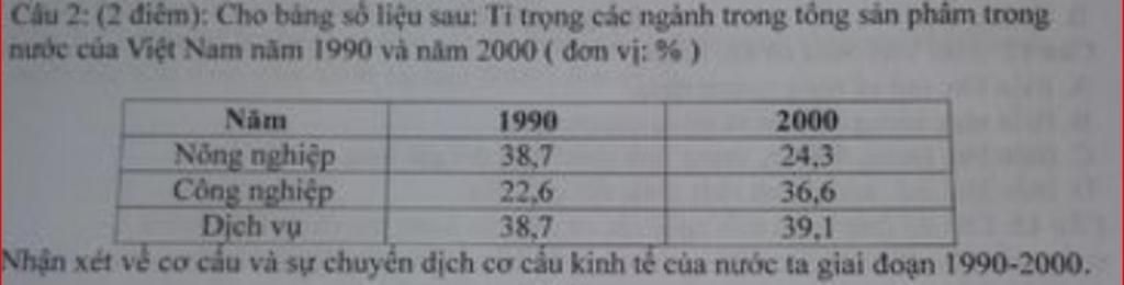 - Nhận xét cơ cấu và sự chuyển dịch cơ cấu kinh tế nước ta giai đoạn 1990 - 2000 :