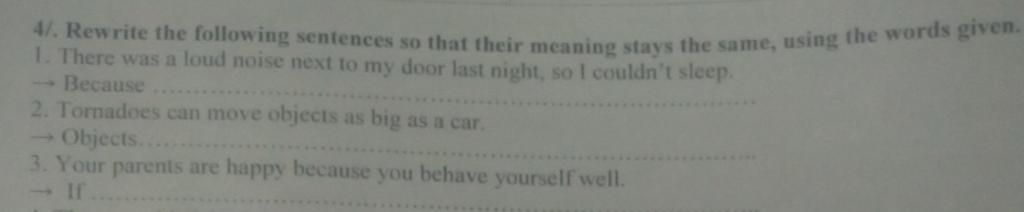 `1`. Because there was a loud noise next to my door last night, I couldn't sleep.