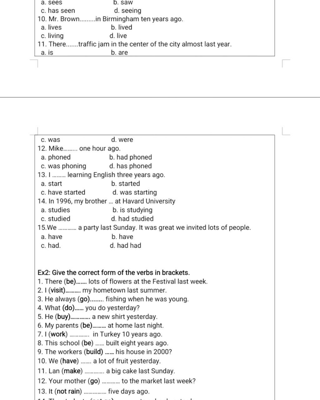 `⇒` Do traffic jam là DT không đếm được `→` Dùng was
