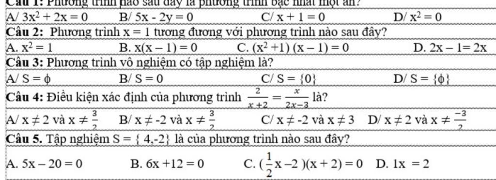 → Phương trình vô nghiệm có tập nghiệm là S=∅