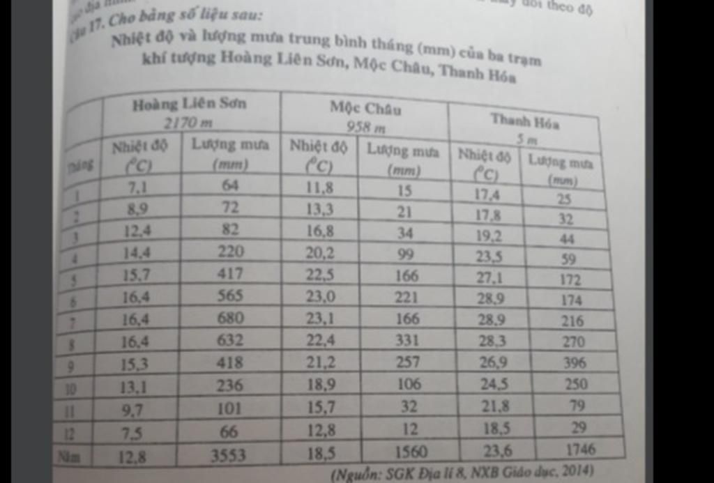 Nhiệt độ và hượng mưa trung bình tháng (mm) của ba trạm