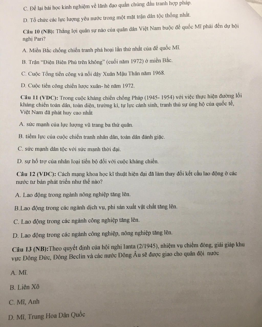 Câu 10 (NB): Thắng lợi quân sự nào của quân dân Việt Nam buộc đế quốc Mĩ phải đến dự hội