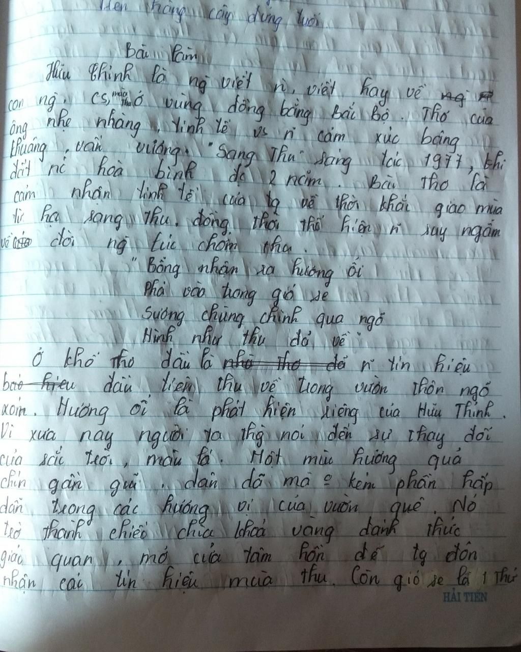 Viết đoạn văn ngắn gọn cảm nhận về 1 khổ thơ trong bài "Sang Thu" của Hữu Thỉnh