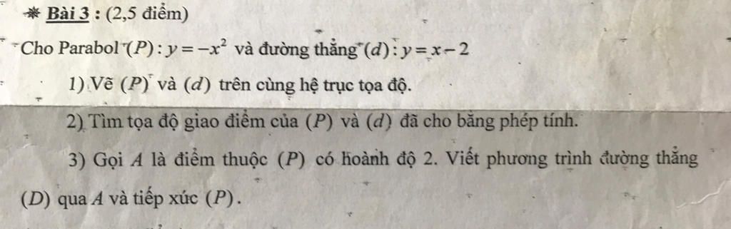 3) Gọi A là điểm thuộc (P) có hoành độ 2. Viết phương trình đường thắng