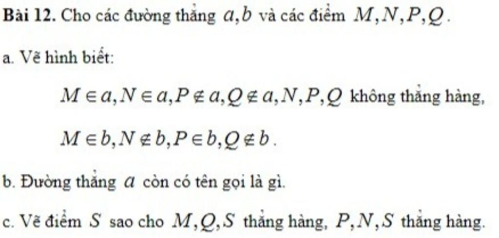 Bài 12. Cho các đường thẳng a,b và các điểm M,N,P,Q.
