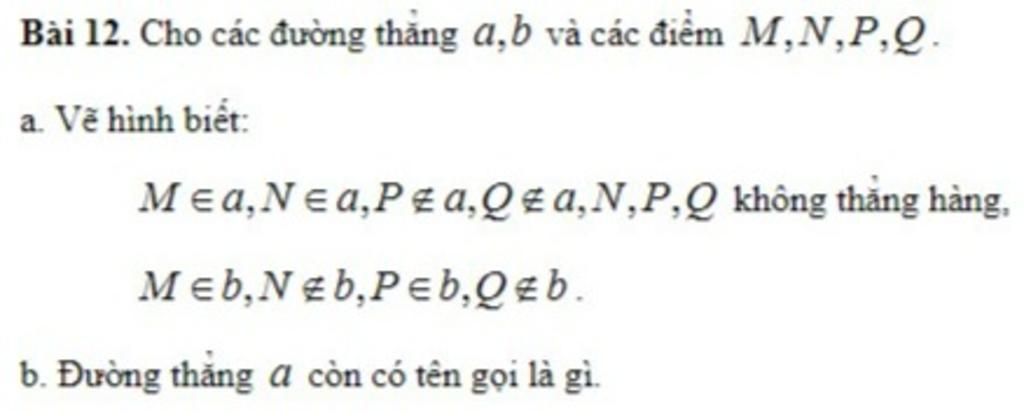 $\text{b)Đường thẳng a còn có thể gọi là đường thẳng MN(vì M,N nằm trên a)}$