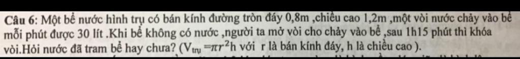 Vậy sau khi vòi nước chảy được $1h15'$ thì nước chưa tràn bể.