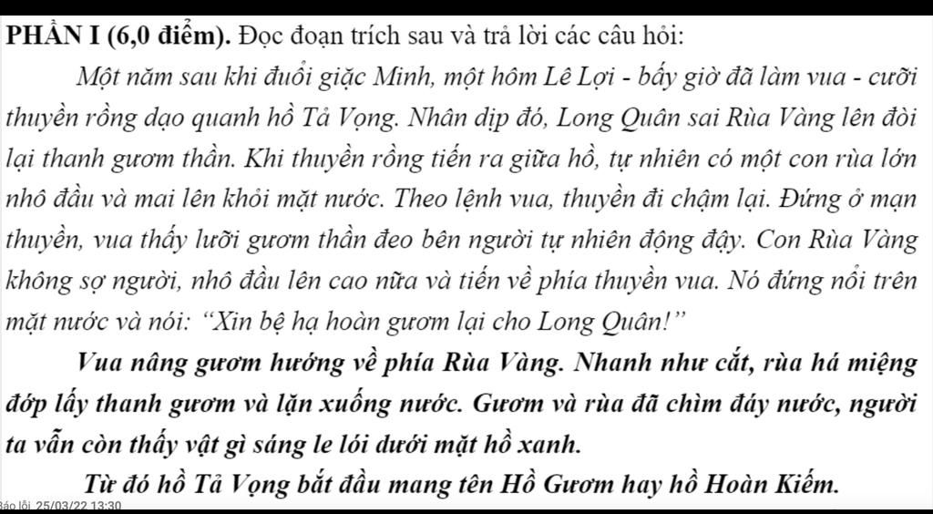 $\text{+ Nhằm giải thích một vấn đề nào đó : ở đây là Hồ Hoàn Kiếm}$