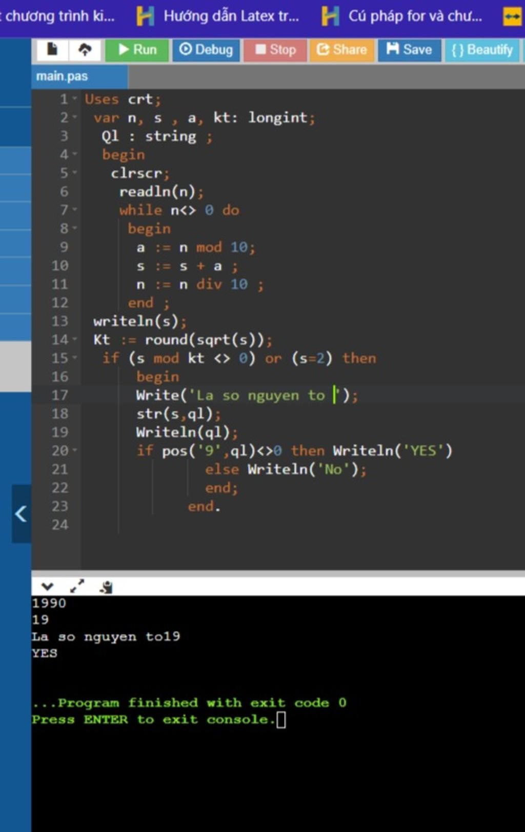 if (ok=true) and ((s-9) mod 10=0) then writeln('yes')