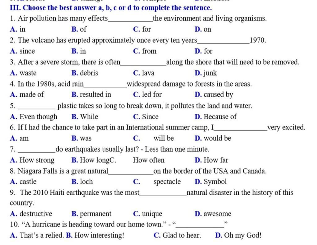 III. Choose the best answer a, b, c or d to complete the sentence.