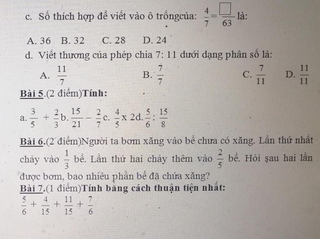 `1/3` + `2/5` = `11/15` ( phần xăng )