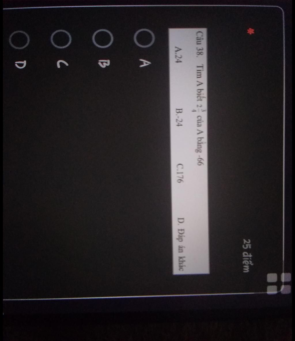 ` 2` và `3/4` của -66 là : `-66 : 11/4 = -24`