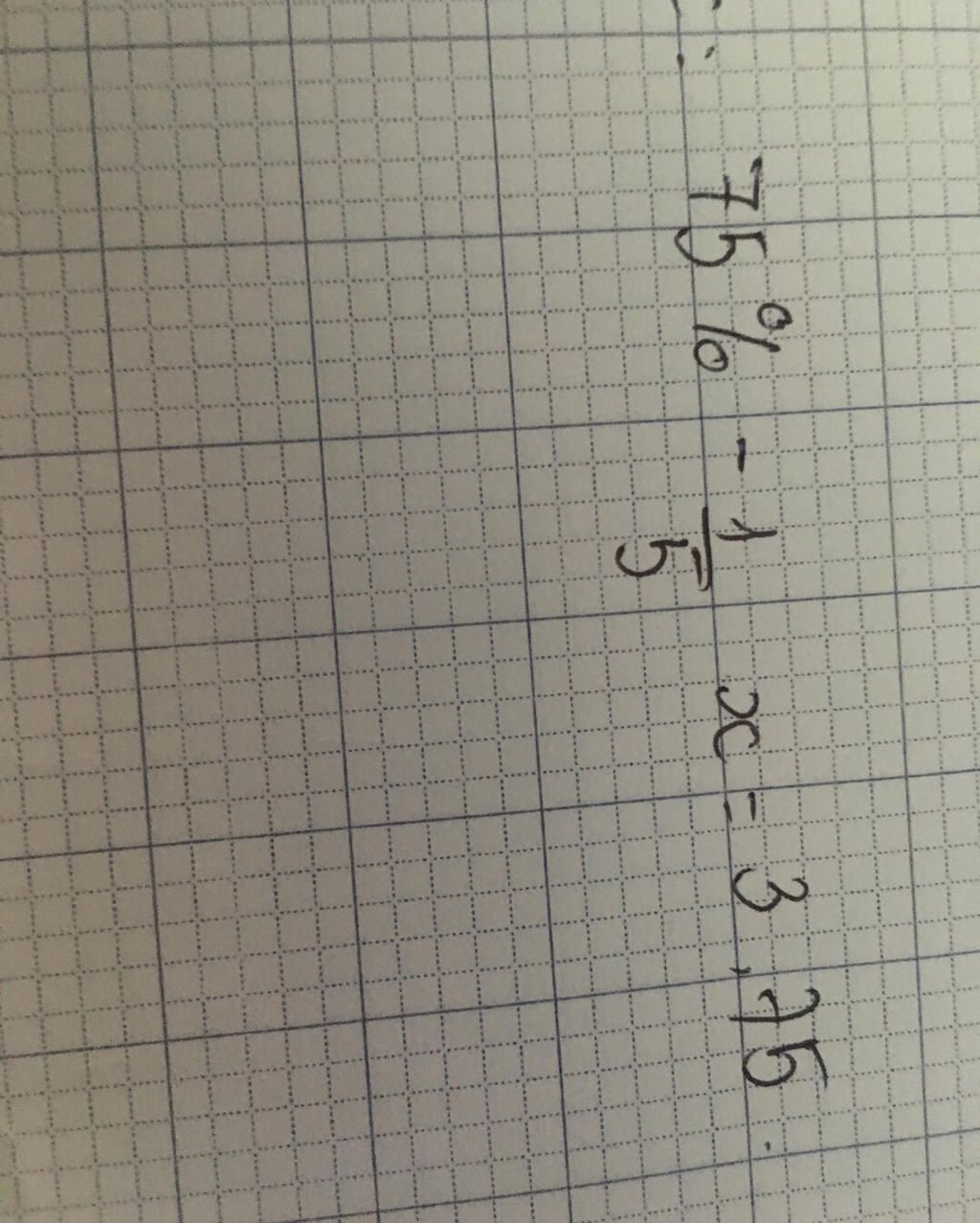 `75% - 1/5 x = 3,75 `
