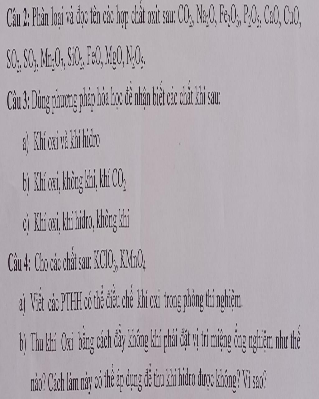 c.Ta lm như câu a,b để nhận bt suy ra lọ còn lại là ko khí.