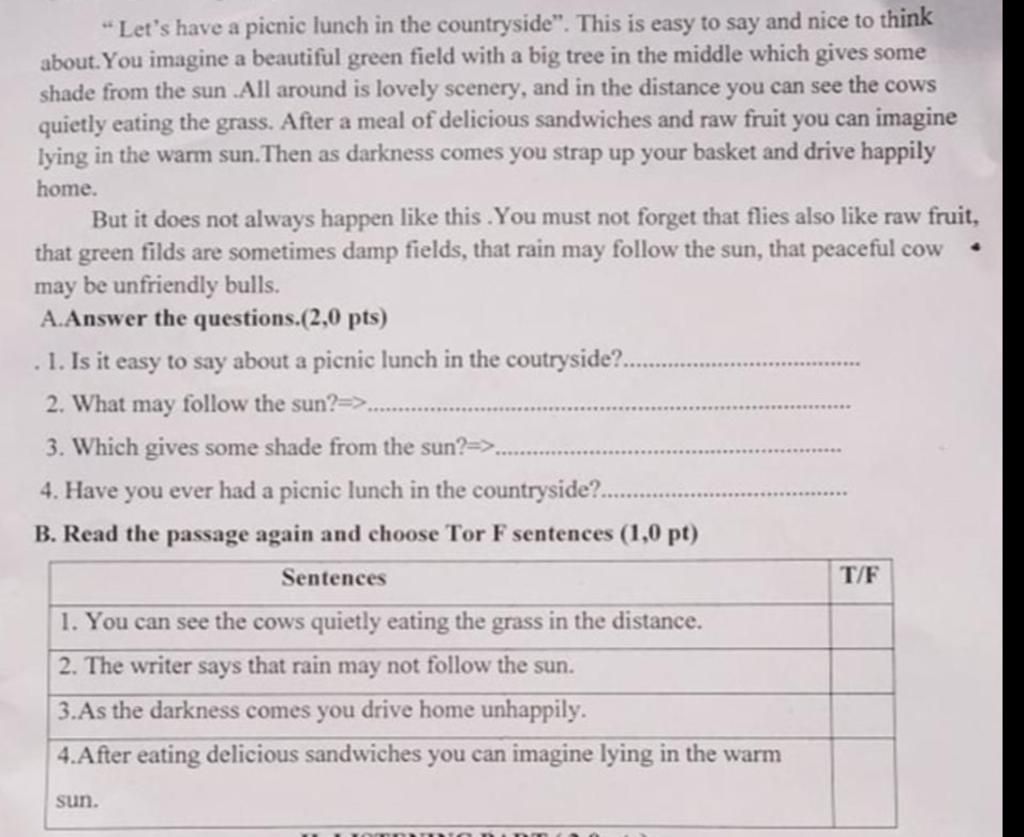"Let's have a picnic lunch in the countryside". This is easy to say and nice to think