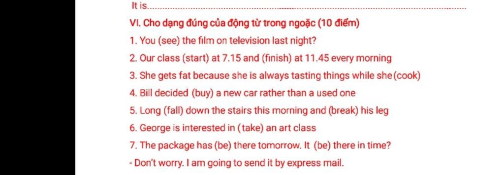7.will be , will it be there in time (tương lai phải phân biệt nhé )