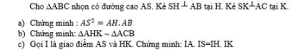 mà `AS^2=AB.AH => AB.AH=AC.AK => \frac{AH}{AC}=\frac{AK}{AB}`